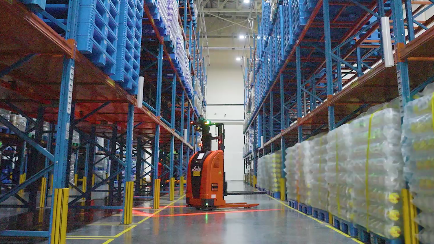 林德 L-MATIC 系列托盤堆垛機器人(負載 1200-2000kg)專為復雜物流場景打造。 其 360° 安全設計結合獨立安全模塊與多傳感器,可精準感知環(huán)境變化并避障。性能上,憑借 ±10mm 的高定位精度、1.5m/s的運行速度、以及行駛/轉向/提升動作同步技術和動態(tài)路徑規(guī)劃,實現(xiàn)高效流暢的堆垛作業(yè)。此外,其成熟的車載控制與調度系統(tǒng)支持多種通信協(xié)議,可無縫對接各類倉儲管理系統(tǒng)(WMS),并協(xié)同安全門、電梯、傳送線等設備,廣泛應用于產線配送、貨架存儲、物料上下架等任務。