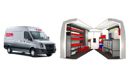 ● A service van loaded with common spare parts and equipped with GPS navigation